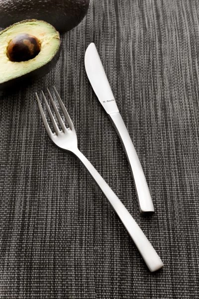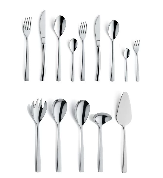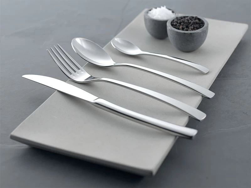 Aurora is een besteklijn waar kwaliteit wordt gecombineerd met exclusieve designs en functionaliteit. Het subtiele design en de licht gebogen handgrepen van het model maken van dit bestek iets bijzonders, daarnaast ligt het door de lichte buiging van het heft zeer comfortabel in de hand.