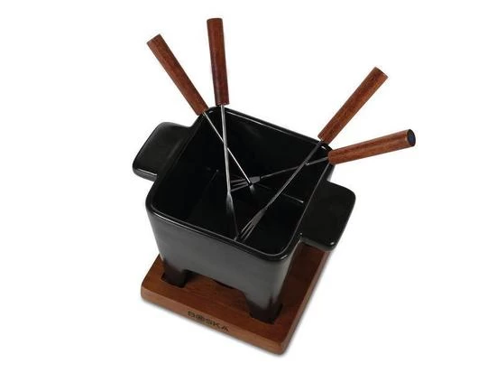 Wil je een originele, stijlvolle kaasfondueset? Deze zwarte fondueset is één met klasse! De fondueset bestaat uit vorkjes, pan, mahoniehouten plank en waxinelichtje. De fondueset is ideaal voor het warm houden van kaas tijdens de maaltijd of bij de borrel. Het handige aan deze fondueset is dat de pan ook geschikt is voor de magnetron. Vervolgens houd je de kaas warm met een waxinelichtje.