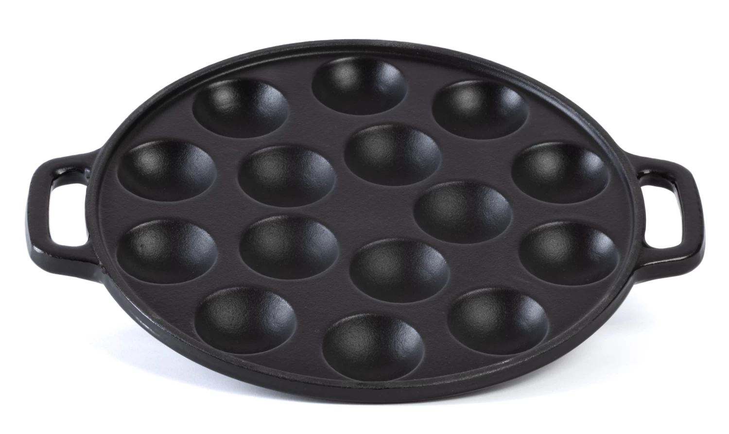 Met de gietijzeren poffertjespan van Cookinglife maak je in een handomdraai verse poffertjes. De pan is geschikt om 15 poffertjes per keer te maken. De pan is 24 x 29 cm en weegt ongeveer 3 kg. Doordat de poffertjespan van gietijzer is, bereikt de pan gemakkelijk een goede temperatuur en wordt de warmte goed verdeeld. De pan is geschikt voor alle warmtebronnen, voor langdurig gebruik is het aan te raden de pan na afloop met de hand schoon te maken.