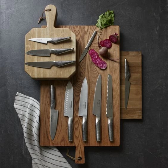 Het uit Japan afkomstige merk Global voert 5 verschillende messen series, waaronder de G-serie. De messen van de Global G-serie zijn bedoeld voor de professionele- en hobbykoks en zijn gemaakt van Cromova staal. Dit roestvast staal staat bekend om zijn lichte gewicht en zijn hardheid van 56 -58 Rockwell. De messen uit de G-serie worden dan ook geslepen in een hoek van 17°. Verder zijn de heften van RVS gevuld met zand, en beschikken deze over anti-slip kuiltjes. Al deze bewerkingen zorgen ervoor dat de messen prettig in de hand liggen en fijn zijn om mee te werken. Naast de vele messen wordt de G-serie ook aangevuld met Global messenaccessoires, waaronder een aantal aanzetstalen en messenmagneten. Deze zijn dan ook te bestellen bij Cookinglife!