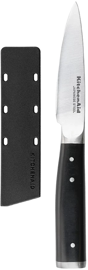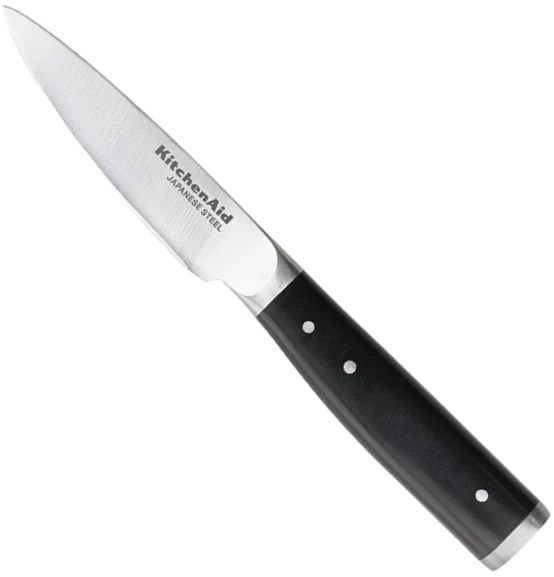 Keukenmes voor het schillen met een 9 cm lang lemmet van gehard Japans staal. Uitgerust met een comfortabel handvat van hard en duurzaam materiaal met drievoudige klinknagels. Het mes wordt geleverd met een lemmetbeschermhoes. Het is vaatwasmachinebestendig, maar handwassen wordt aanbevolen om de snijeigenschappen van het lemmet en de esthetiek van het mes zelf langer te behouden.