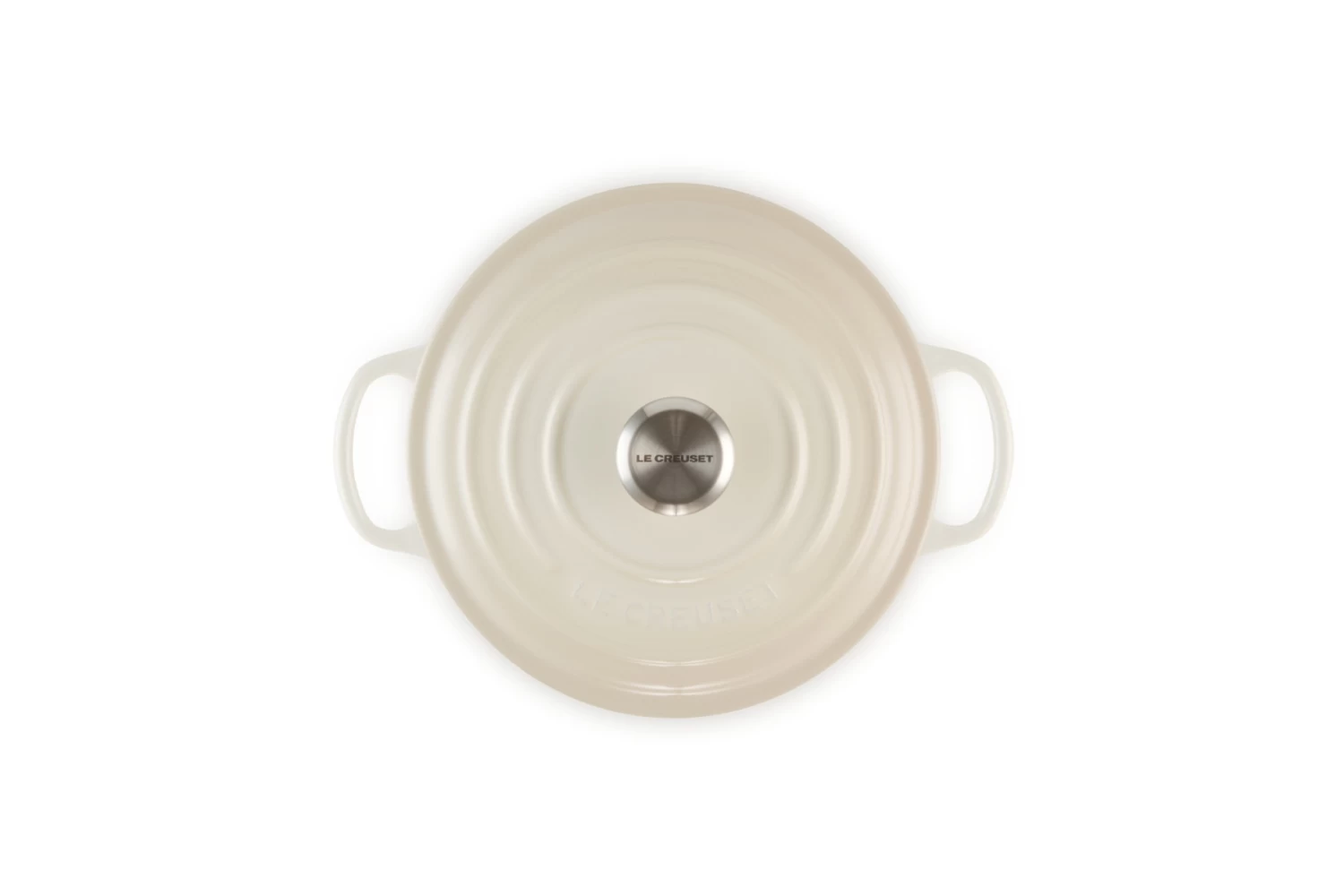 Met deze Le Creuset Braadpan Signature in de kleur meringue haal jij een echte eyecatcher in huis. De braadpan heeft een diameter van 20 centimeter en een inhoud van 2.4 liter, dit maakt hem geschikt voor 2 à 3 personen. De pan is vervaardigd uit geëmailleerd gietijzer wat de warmte vasthoudt, zodat het eten gelijkmatig kan bakken en bruinen. Deze braadpan is vrijwel geschikt voor alles, maar staat vooral bekend om verschillende soorten steak en vis in te braden. Deze pannen kunnen namelijk heter worden dan pannen met een antiaanbaklaag.