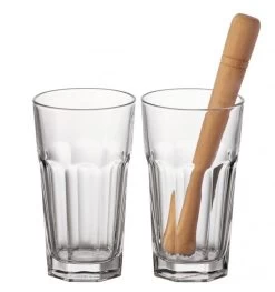 Zelf de lekkerste mojito’s en andere cocktails maken? Met deze cocktailglazen en stamper van Leonardo lukt je dit binnen een handomdraai. Stamp met de stamper de ingrediënten zoals munt, limoen, gember en andere fruitsoorten fijn, giet er je favoriete drank over en geniet! Deze set bestaat uit: