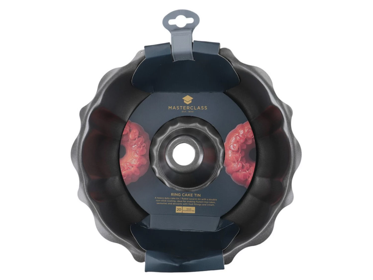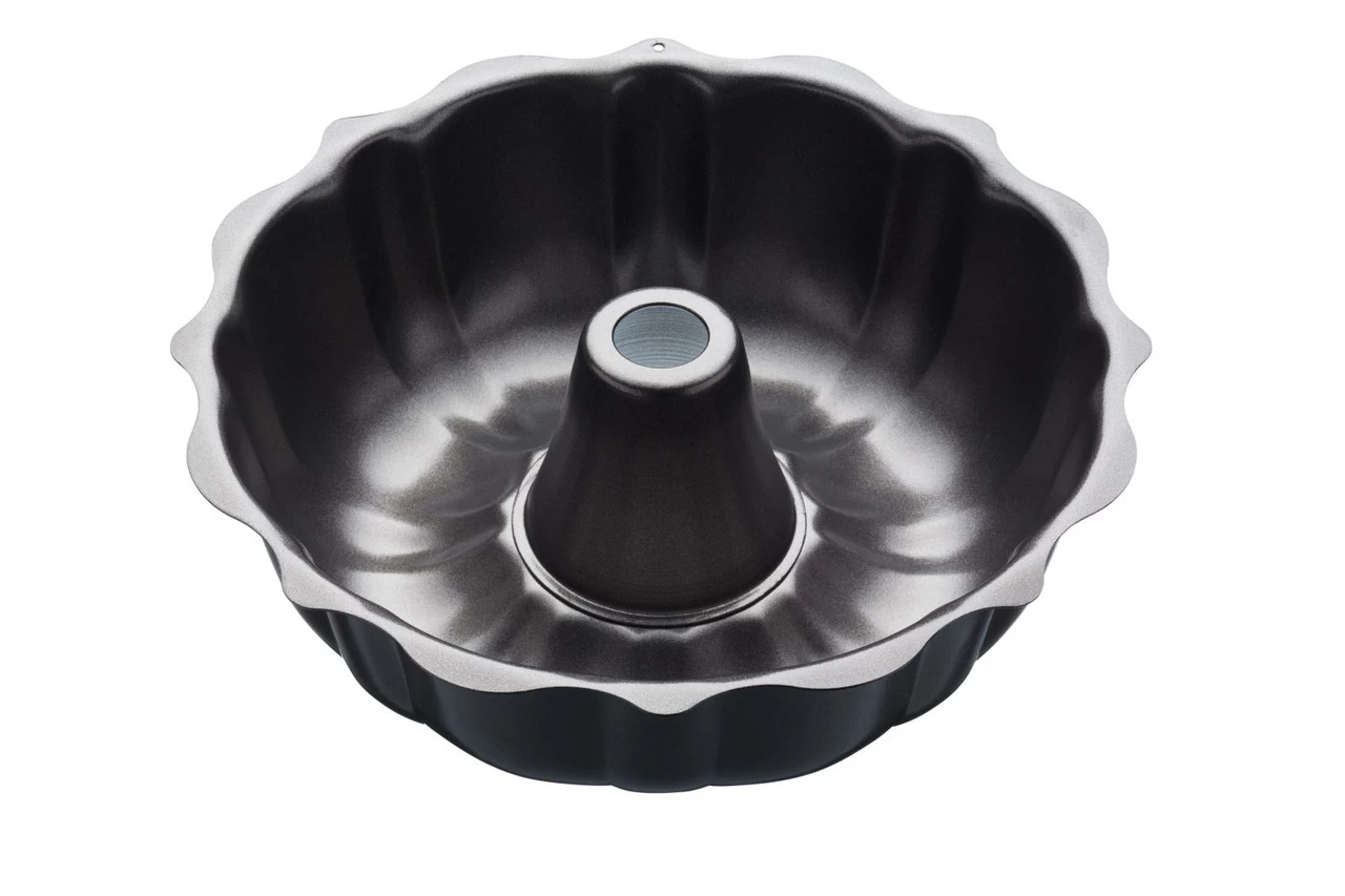Maak een cake bijzonder met de MasterClass tulbandvorm. De tulbandvorm heeft een simpele, maar ook een elegante vorm. De vorm heeft een diameter van 26,5 centimeter en is 8 centimeter hoog. Niet alleen is de ring geschikt voor cake, maar de ring kan ook opgevuld worden met terrine van varkens of een ander gerecht. Ook kan de tulbandvorm in de vriezer of in de koelkast.