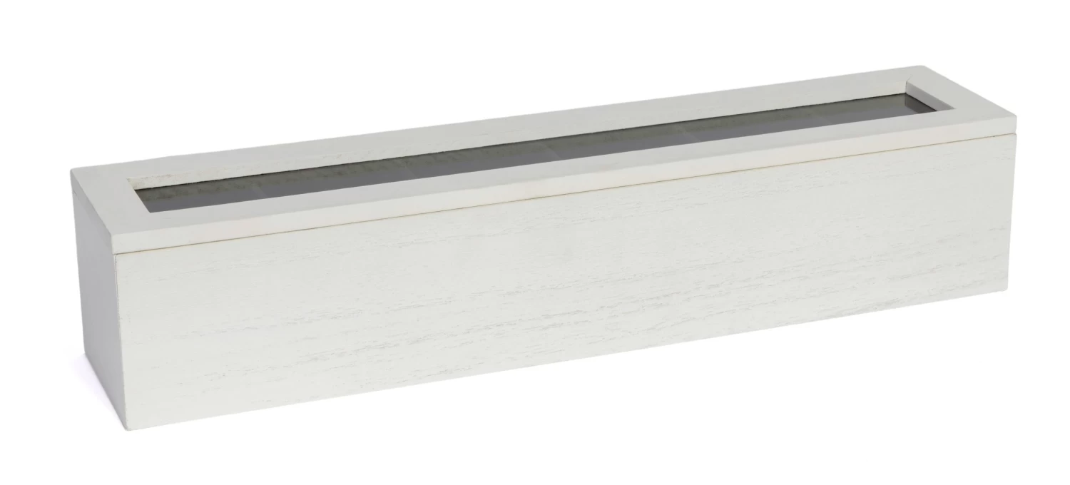 Hou al je theezakjes overzichtelijk bij elkaar met deze Theedoos Wit 6-vaks – met Fluweel – 43 x 9 cm! De theedoos is gemaakt van hout en heeft 6 vakjes. Ook heeft hij een doorzichtige deksel, zodat je gemakkelijk alle theesmaken kan zien. De theedoos heeft een afmeting van 43 x 9 cm en de binnenkant is van fluweel.