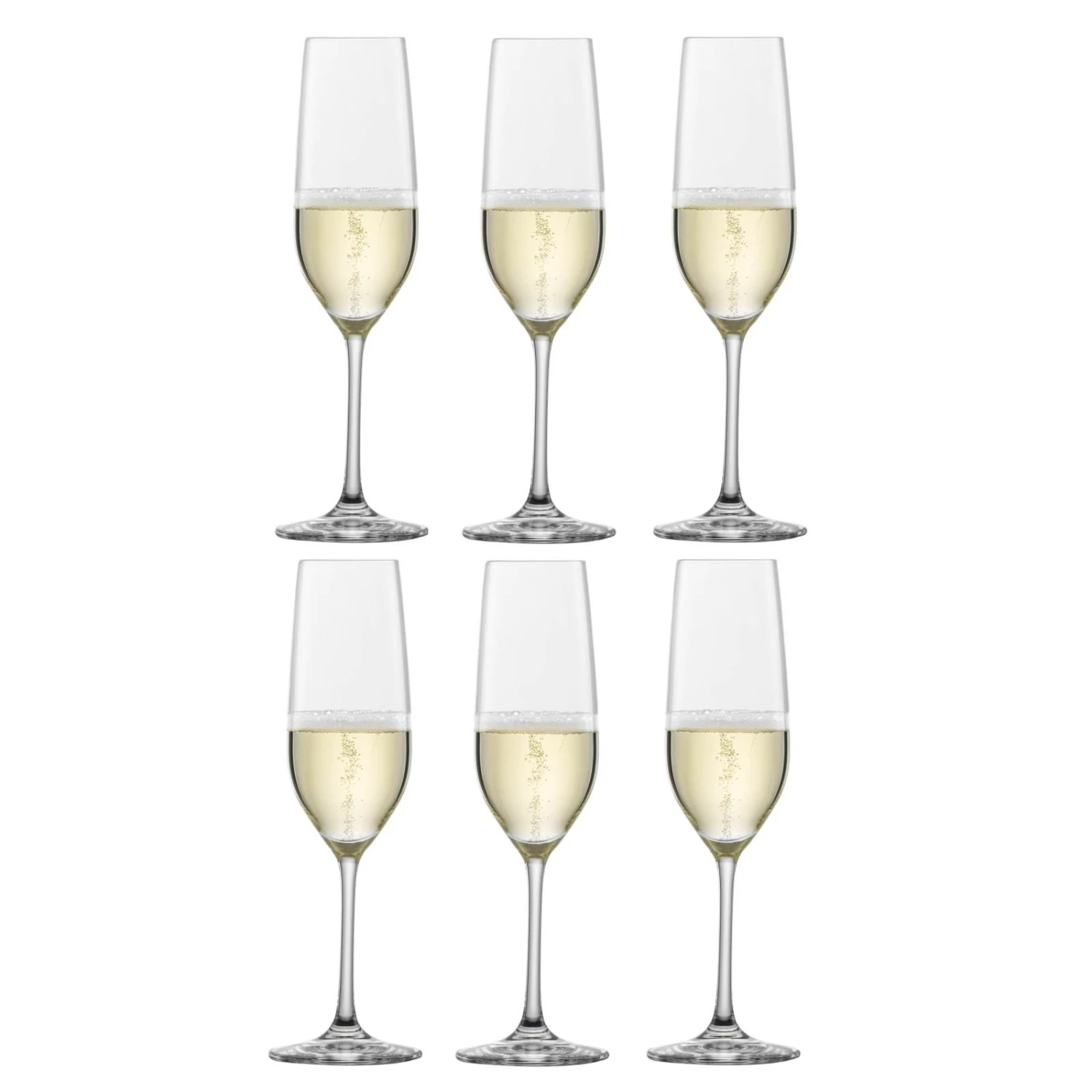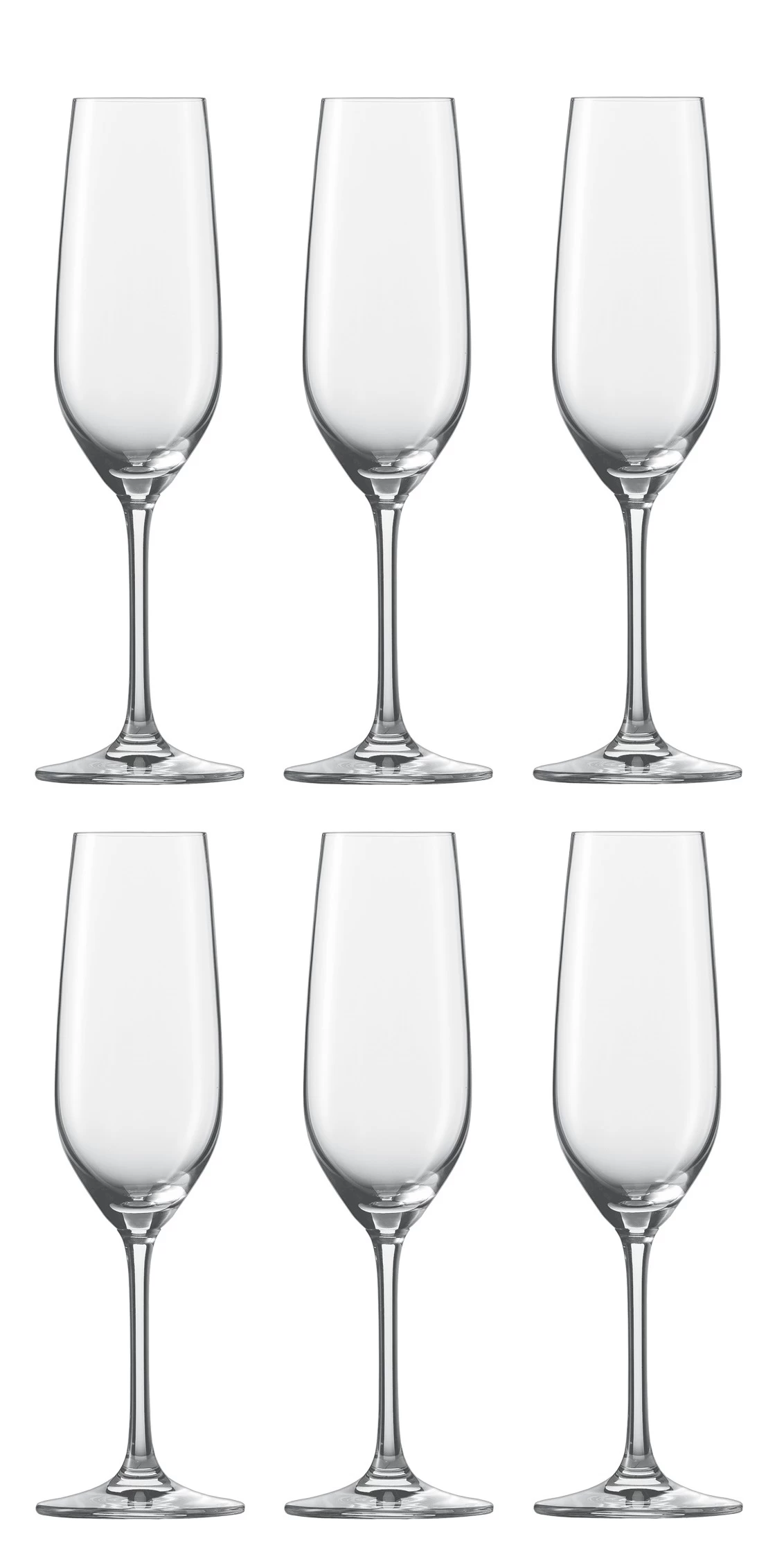 Deze prachtige Schott Zwiesel champagneglazen Vina zijn te koop bij Cookinglife. Deze glazen zijn onderdeel van de Vina collectie. Deze collectie wordt gekenmerkt door de simplistische, maar toch stijlvolle glazen. De moderne serie concentreert zich volledig op de geur- en smaakbeleving van, in het geval van dit glas, champagne. Het glas is gemaakt van gepatenteerd Tritan® Kristalglas. Dit glas is vaatwasbestendig en blijft zelfs na duizenden spoelgangen nog helder. De glazen worden per 6 geleverd voor de prijs van 5 glazen.