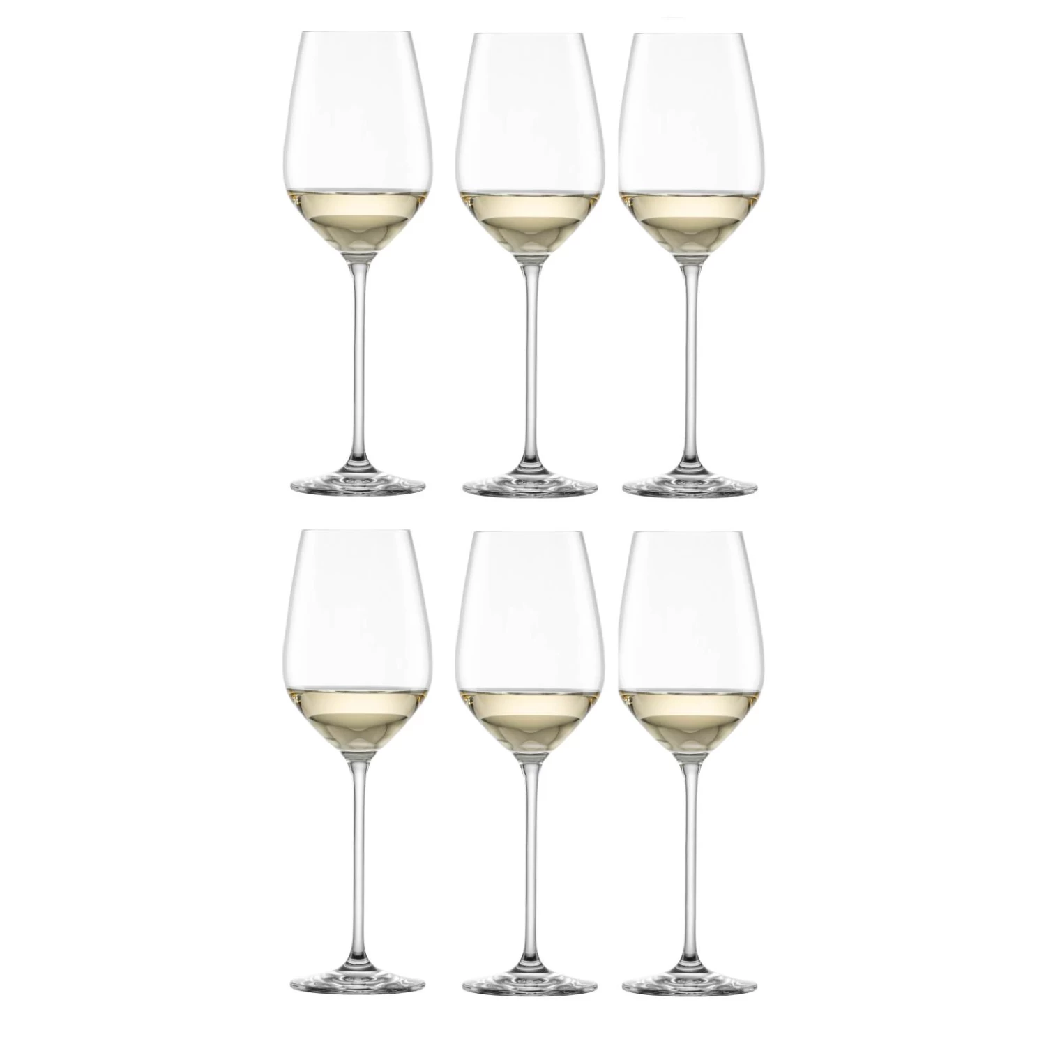 De witte wijnglazen worden geleverd in een set van zes stuks.