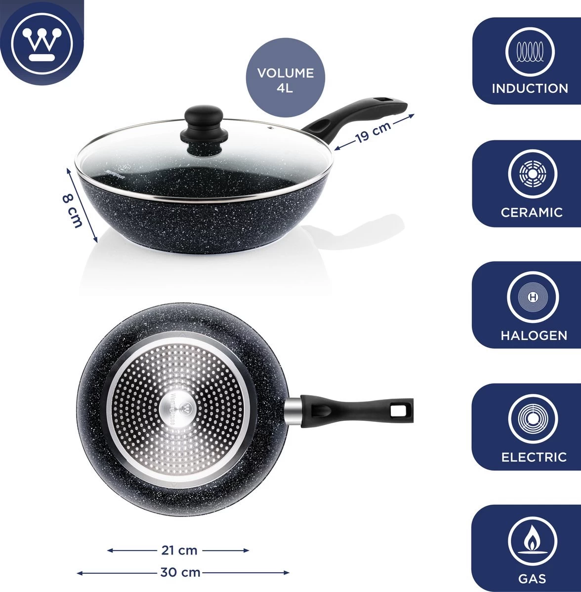 Westinghouse Pannenset Black Marble (Grillpan 28 Cm + Wokpan ø 30 Cm) – Inductie En Alle Andere Warmtebronnen